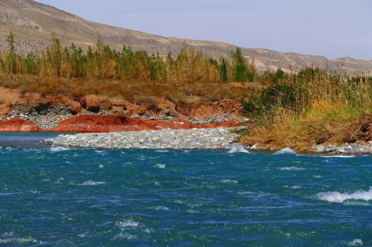玛纳斯石滩连绵数十公里的峡谷四周是尚绿的芨芨草,红色、灰色、黄色的山谷,宽广的河床和丰富而色彩颜色迥异的各种植被。